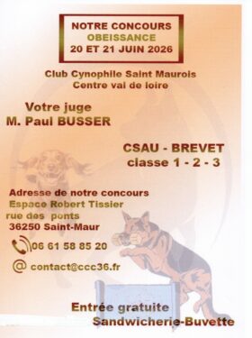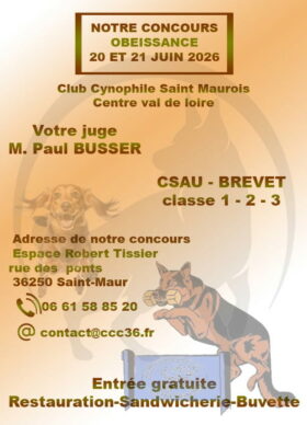 VOICI LES PROCHAINES DATES IMPORTANTES : SAMEDI 16 MAI : CLUB FERMÉ (Pont de l’Ascension) §§§§§§§§§§§§§§ SAMEDI 20 et DIMANCHE 21 JUIN CONCOURS D’OBÉISSANCE ESPACE ROBERT TISSIER (répertorié sur Maps) Rue des 3 PONTS à SAINT MAUR §§§§§§§§§§§§§§ FÊTE DES VACANCES le SAMEDI 4 JUILLET §§§§§§§§§§§§§§ VACANCES : CLUB FERMÉ du 5 JUILLET au 28 AOÛT …
